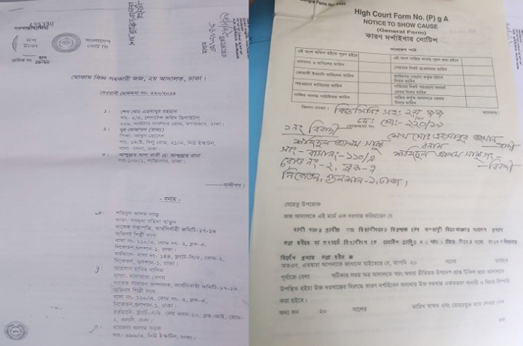 তিনজন বাদী স্বাক্ষরিত পিটিশনটিতে অভিনয় সংঘের সাবেক সভাপতি শহিদুল আলম সাচ্চুকে ১নং করে, নির্বাচন পরিচালনা কমিটির ছয়জনসহ মোট আটজনকে বিবাদী করা হয়েছে। এছাড়া বিবাদী করা হয়েছে উপ-পরিচালক জেলা সমাজকল্যাণ অফিসকেও। সাচ্চু ছাড়া অন্য বিবাদীরা হলেন শিল্পী সংঘের সাধারণ সম্পাদক আহসান হাবিব নাসিম, প্রধান নির্বাচন কমিশনার হিসেবে দায়িত্ব পালন করা খায়রুল আলম সবুজ, মাসুম আজিজ ও বৃন্দাবন দাস। আরও আছেন কেএস ফিরোজ, লাকী ইনাম ও নরেশ ভূইয়া।