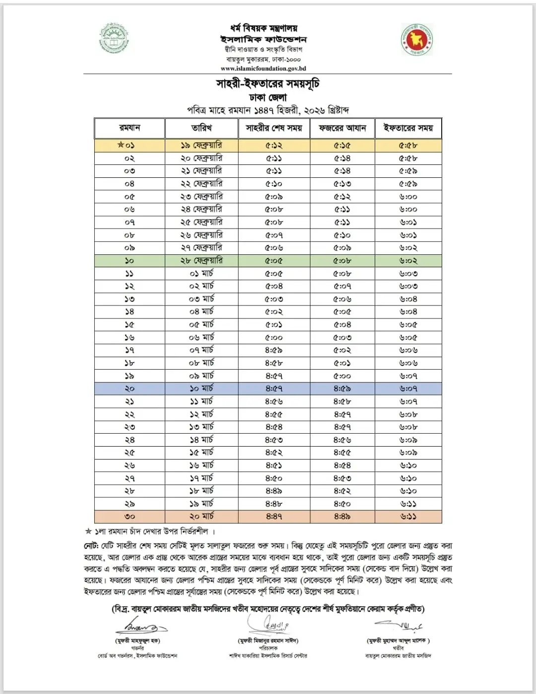 ইসলামিক ফাউন্ডেশনের পক্ষ থেকে বলা হয়েছে, রমজানের এই সময়সূচি মেনে চললে দেশের মুসলমানরা নৈতিক ও ধর্মীয় দায়িত্ব যথাযথভাবে পালন করতে পারবেন। প্রতিটি মুসলমানের জন্য এটি ঈমানের দৃঢ়তা বজায় রাখার এক গুরুত্বপূর্ণ দিক হিসেবে বিবেচিত হবে।