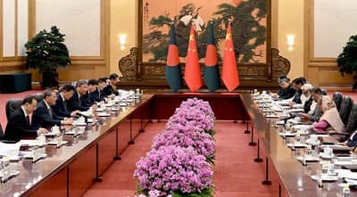 গ্রেট হলে চীনের প্রধানমন্ত্রী লি কিয়াং-এর সঙ্গে দ্বিপাক্ষিক বৈঠকে বসেছেন সফররত বাংলাদেশের প্রধানমন্ত্রী শেখ হাসিনা।বুধবার (১০ জুলাই) স্থানীয় সময় বেলা সোয়া ১১টায় বেইজিংয়ে ‘গ্রেট হল অব দ্য পিপল’ দুই দেশের প্রতিনিধিদের নিয়ে এ বৈঠক শুরু হয়।